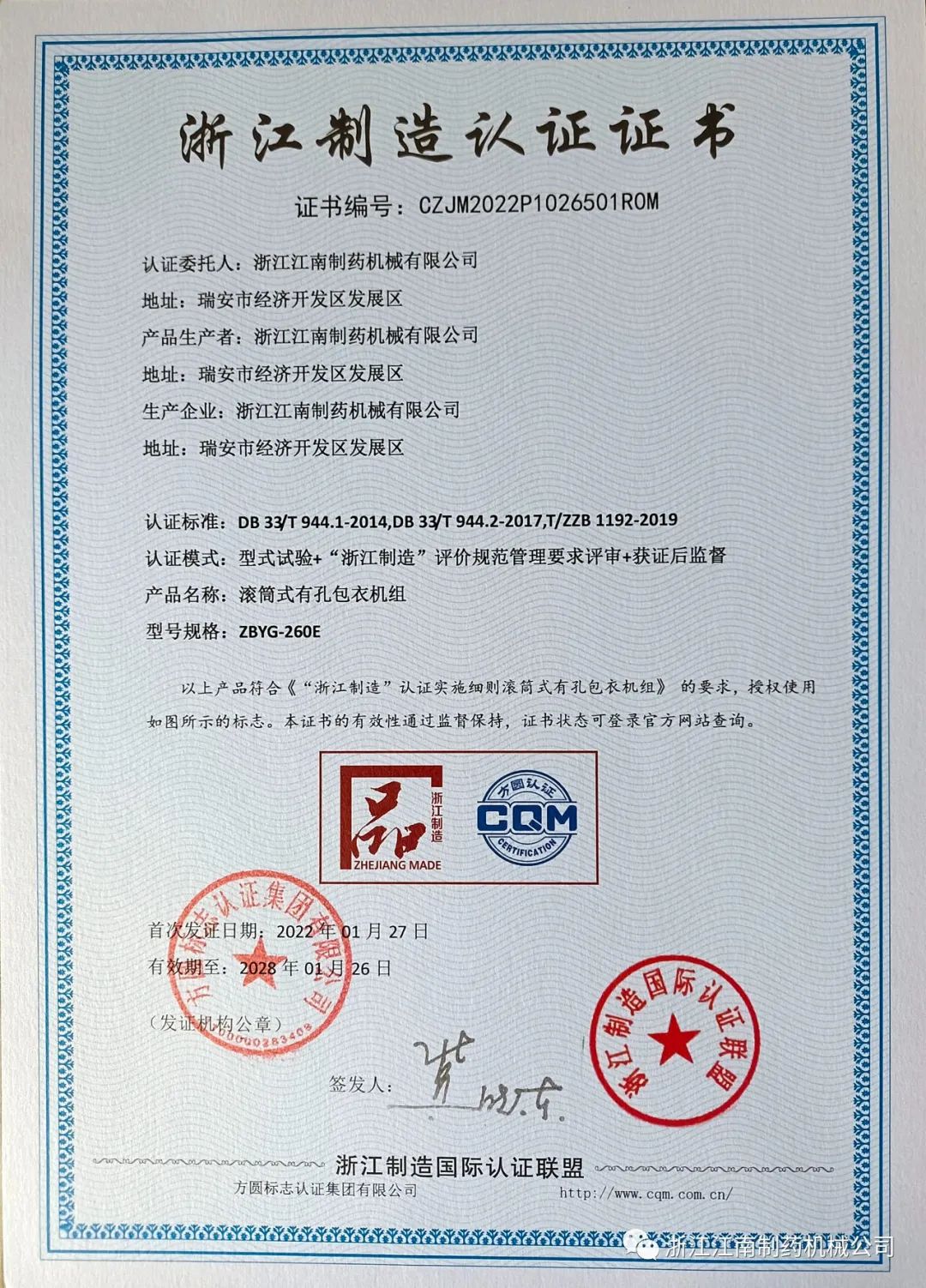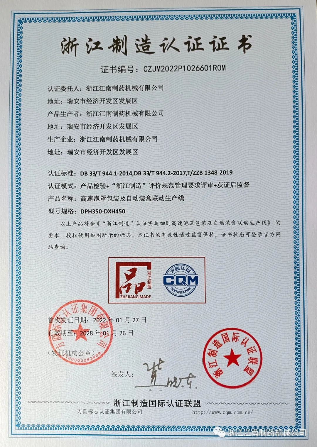 KY在线官网收到了由浙江制造国际认证联盟颁发的“浙江制造”认证证书。