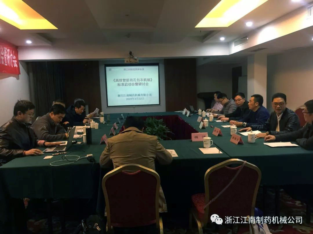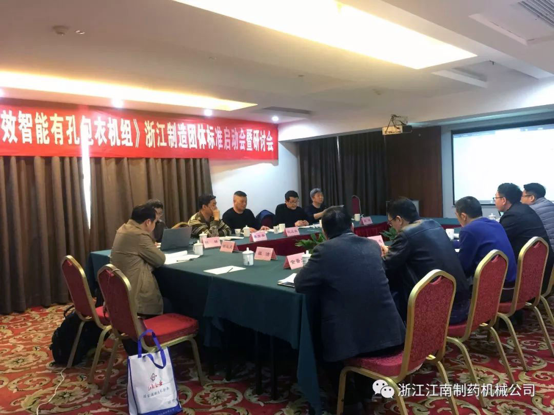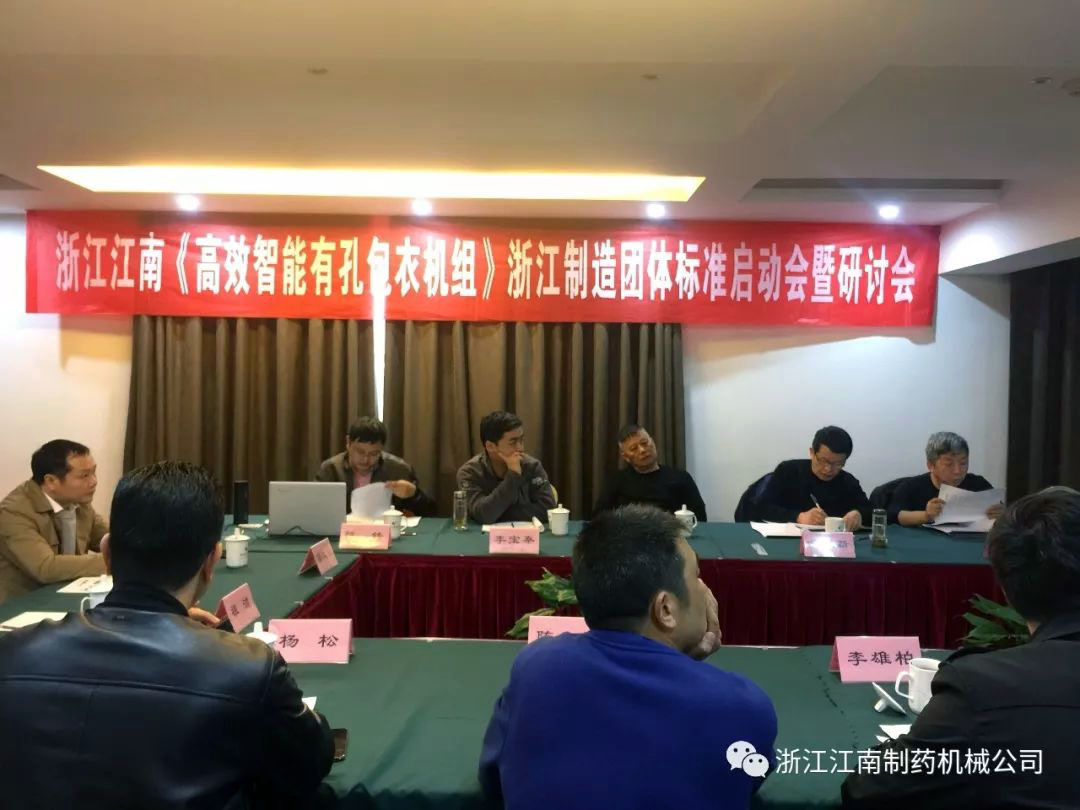 KY在线官网《高效智能滚筒式有孔包衣机组》浙江制造团体标准启动会暨研讨会3月22日(星期五)下午13:30在瑞安华侨饭店召开,为了确保“浙江制造”标准的严谨,会议邀请了全国制药机械标准化技术委员会主任高工李宝秦、华东集团华润制药有限公司高工沈正良、温州市工业设计院教授级高工金建新、温州职业技术学院博士张洁、温州市标准化研究院高级工程师祖洁、瑞安市市场监督管理局高级工程师吴国华、浙江方圆检测集团高级工程师陈锋、瑞安机械行业协会秘书长金普光及我公司董事长杨松、工程师李雄柏、张富等多位专业工程师。工作组专家及成员针对标准草案进行细致而严格的研讨,探讨确定了标准的主要内容及框架,一致肯定了KY在线官网《高效智能滚筒式有孔包衣机组》浙江制造标准的先进性、准确性。