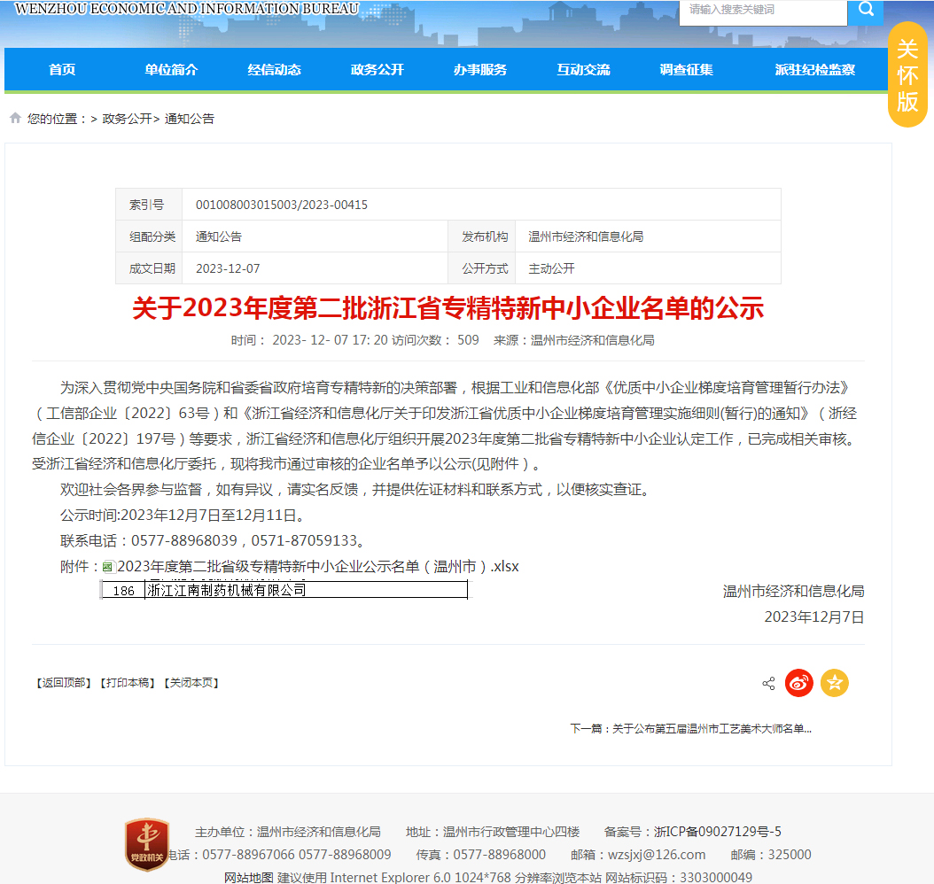 近期,根据工业和信息化部《优质中小企业梯度培育管理暂行办法》(工信部企业〔2022〕63号)和《浙江省经济和信息化厅关于印发浙江省优质中小企业梯度培育管理实施细则(暂行)的通知》(浙经信企业〔2022〕197号)等要求,浙江省经济和信息化厅组织开展2023年度第二批省专精特新中小企业认定工作,KY在线官网被认定为“浙江省专精特新中小企业”。